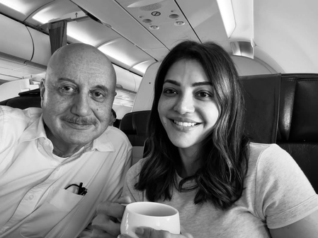 Taking to his official Instagram handle, Kher uploaded a black and white selfie of the two from the flight, along with a heartfelt note that went, “Met the vivacious and talented Miss. #KajalAggarwal on my way to Hyderabad after a long time! We did #NeerajPandey’s #Special26 together! The conversations in a flight are so much fun. (sic).”