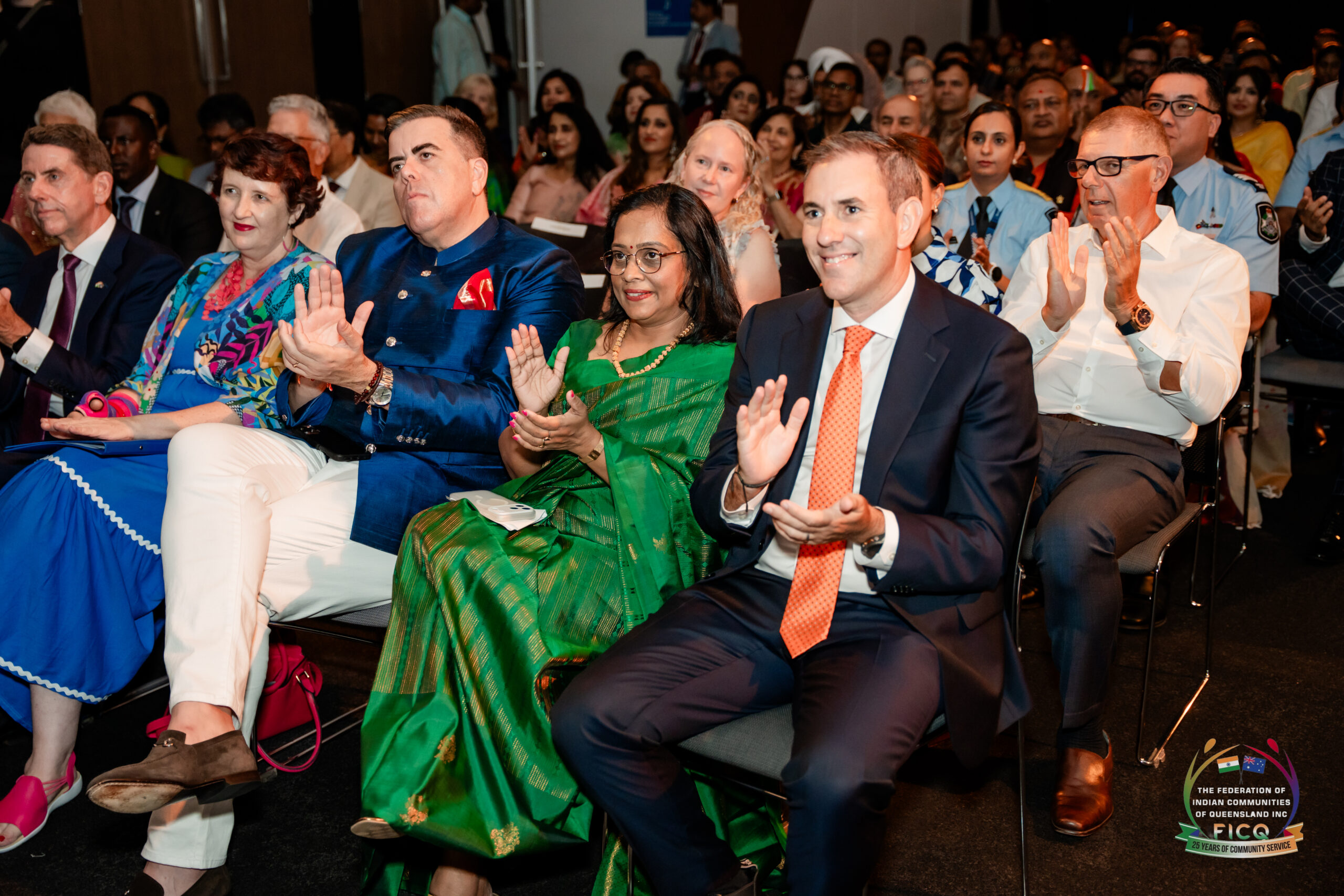 The celebration was graced by an esteemed lineup of dignitaries whose addresses underscored the depth and significance of the India–Australia relationship. Speeches were delivered by The Hon. Jim Chalmers MP, Treasurer of Australia and Federal Member for Rankin; The Hon. Milton Dick MP, Speaker of the House of Representatives; Senator the Hon. Murray Watt, Minister for the Environment and Water; The Hon. Fiona Simpson MP, Minister for Women and Women’s Economic Security, Minister for Aboriginal and Torres Strait Islander Partnerships and Minister for Multiculturalism; Mr Sushil Kumar Goel, representing the Consul General of India in Brisbane; Mr Cameron Dick MP, State Member for Woodridge; Dr Maha Sinnathamby, Patron of FICQ; Senator Paul Scarr, Senator for Queensland; Mr Shayne Neumann MP, Federal Member for Blair; and Councillor Steven Huang, representing the Lord Mayor of Brisbane. Each speaker acknowledged the invaluable contributions of the Indian diaspora to Queensland’s cultural, social, and economic landscape.