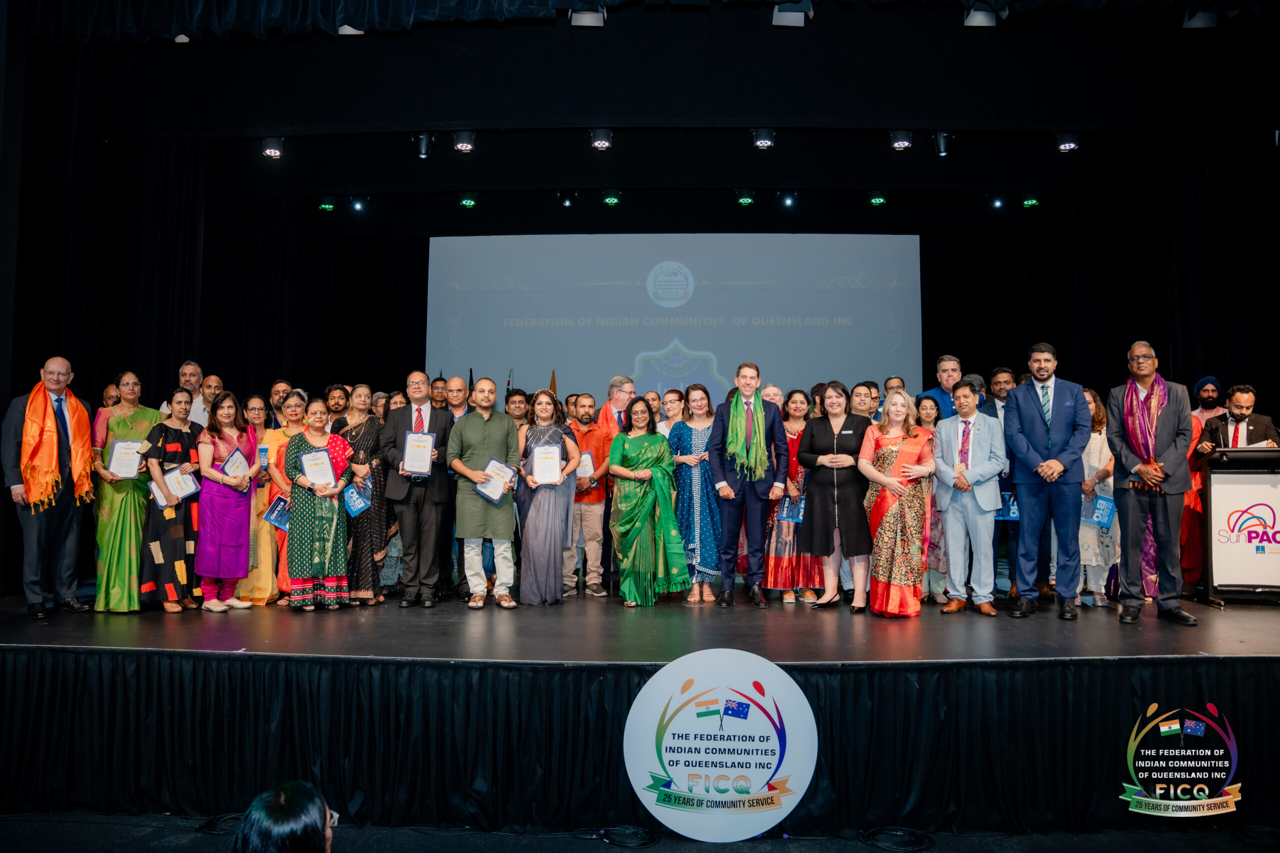 The Federation of Indian Communities of Queensland (FICQ) proudly hosted the India–Australia Day 2026 celebration at SunPAC, Sunnybank, bringing together community members, distinguished leaders, and friends of India and Australia for an evening that honoured the enduring partnership between the two nations. The event stood as a powerful reflection of shared democratic values, cultural richness, people-to-people connections, and the strength of multicultural Australia.