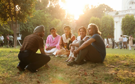 The snap showed Imtiaz sitting on the grass with Vedang Raina and Sharvari accompanying him. They also had some other members from the team with them.