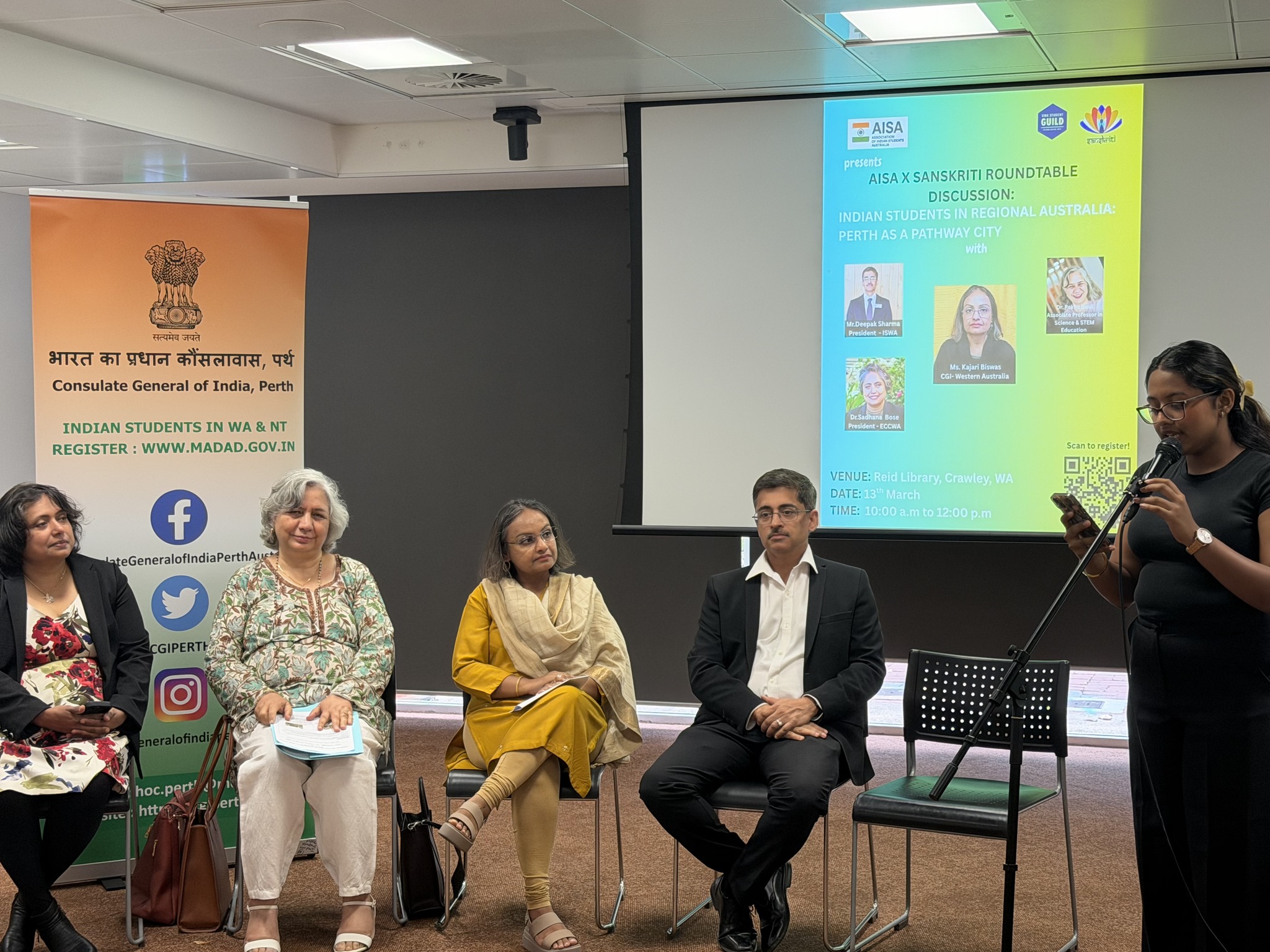 The Consul General of India in Perth participated in an Indian Student Roundtable organised by the Association of Indian Students Australia (AISA), engaging with students on key issues related to consular services and academic life.