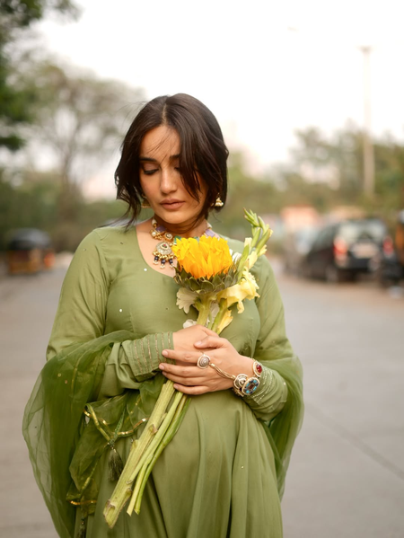 The popular television actress took to her official Instagram handle and posted a string of photos of herself posing in a beautiful green salwar kameez.
