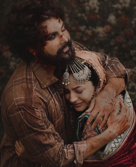 In one image, Shehnaaz is seen hugging an injured Jayy Randhawa, her expression heavy with pain, resilience, and devotion, capturing a love bruised by conflict yet refusing to break. In another visual, she appears in a bridal avatar, draped in the old Punjabi aesthetic.
